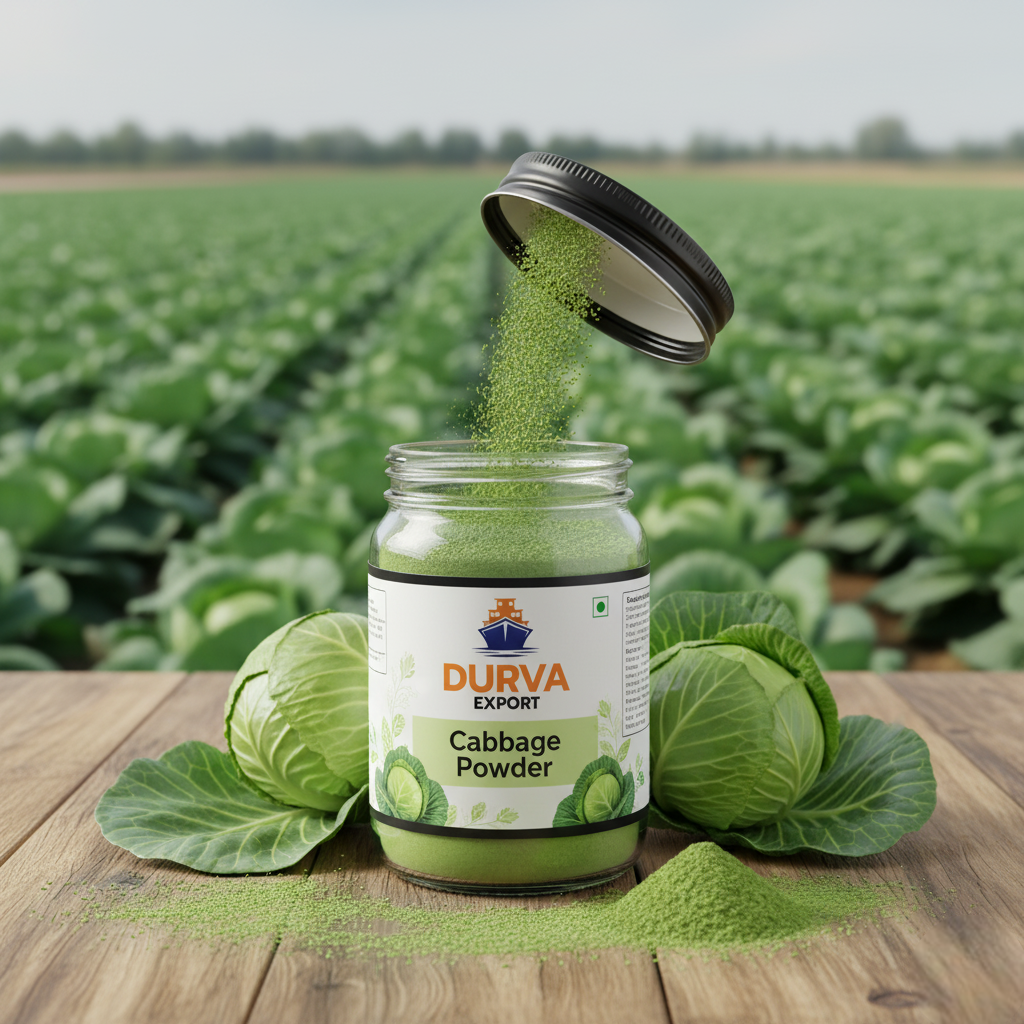 Durva Export’s Premium Cabbage Powder is made from fresh, high-quality cabbage that is washed, dehydrated, and finely milled to preserve its natural aroma, color, and nutritional value. This 100% natural powder is rich in fiber, vitamins, and antioxidants, making it an ideal ingredient for food processing, soups, seasonings, ready-to-cook products, and health formulations. With its excellent shelf life and easy blending, it is a convenient alternative to fresh cabbage for both households and industrial use.